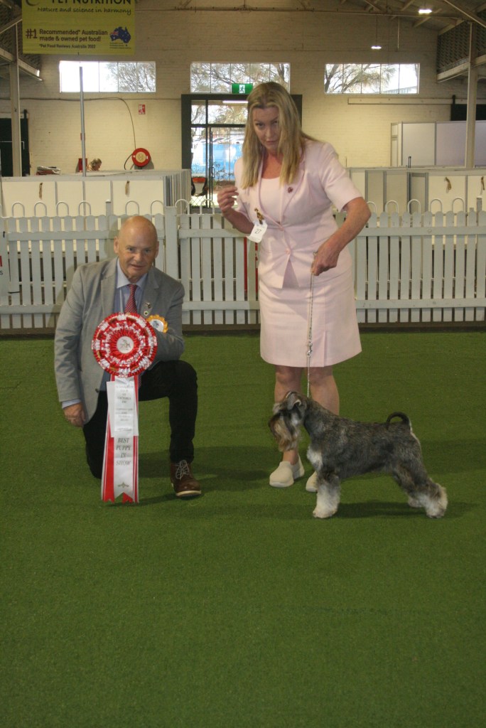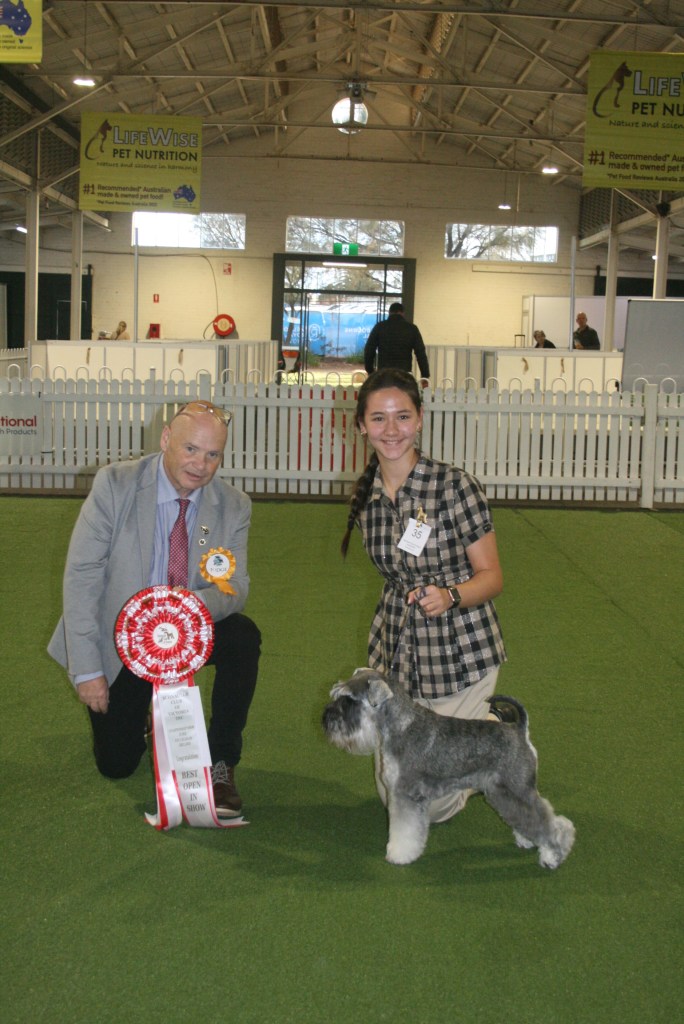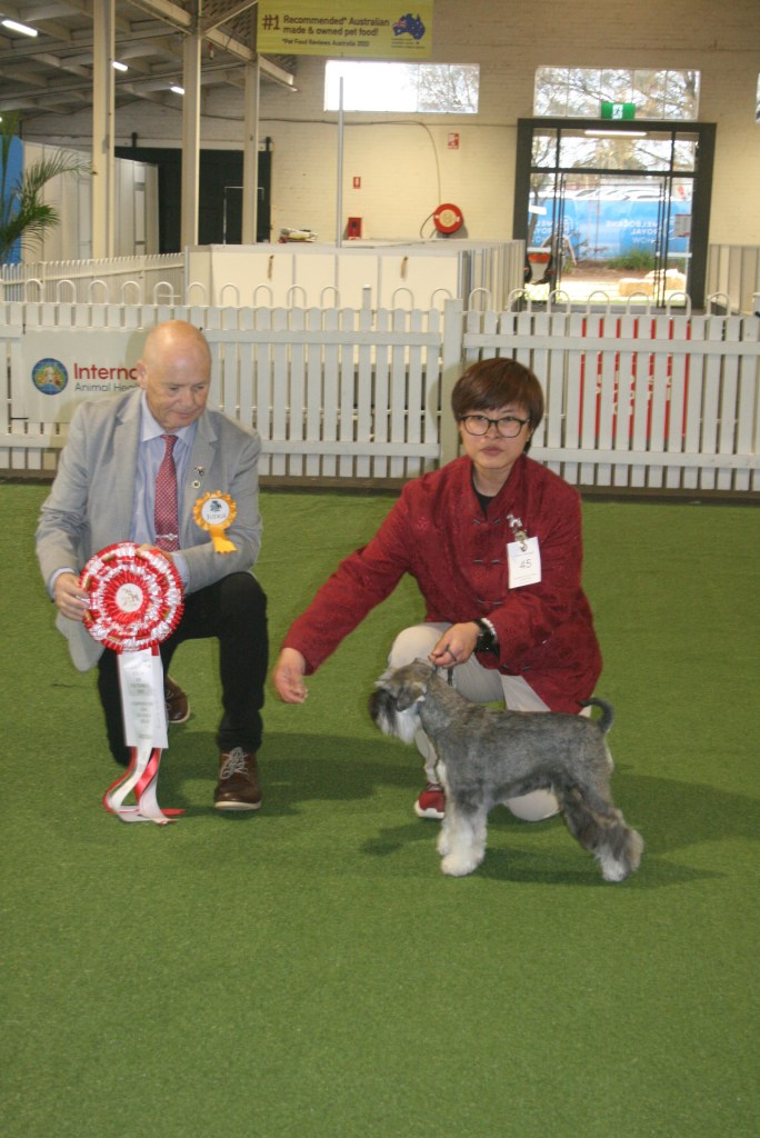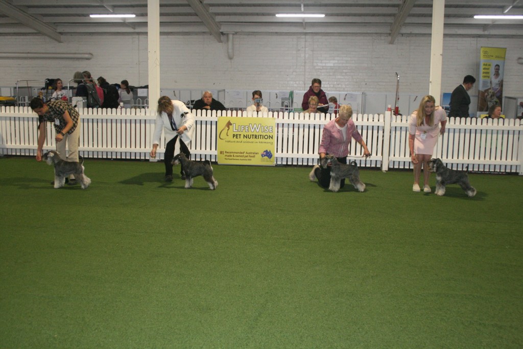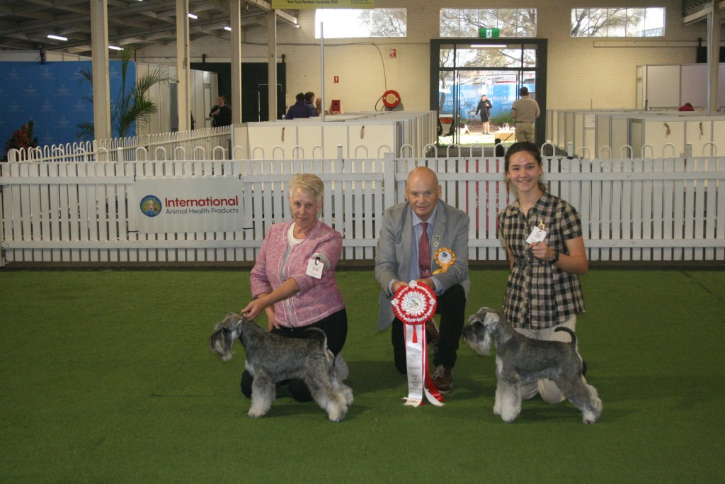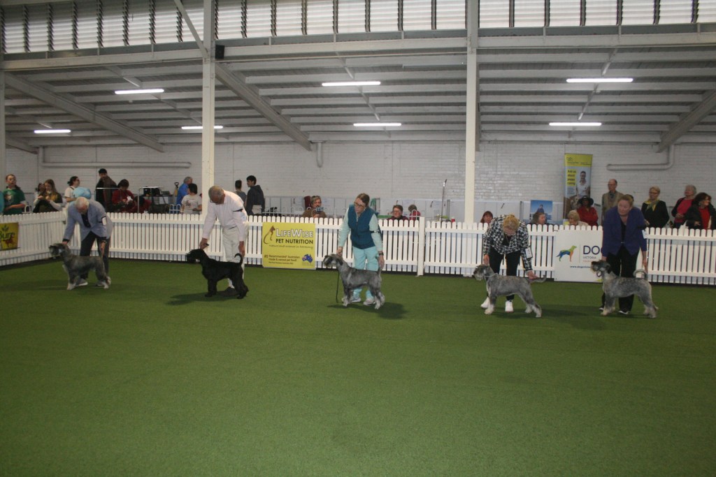 BIS & RUBIS – Best In Show – FORESTAL AMERICAN RECKONING – owned by Ms P Haigh; Runner-up In Show – A20 CH C.I.B. CH SNG CH SUP CH ACESTAR HIGH HOPES FOR VALEHAVEN (Imp Sing) – owned by Ms B A TanBPIS – Baby Puppy In Show – MEGAZTAR BLACK STAR SAPPHIRE – owned by Ms B A TanPIS – Puppy In Show – BRONTIDE SON OF A GUN – owned by Mrs B LuczakJIS – Junior In Show – FORESTAL AMERICAN RECKONING – owned by Ms P Haigh InterIS – Intermediate In Show – CH MEGAZTAR MYSTICAL PHOENIX – owned by Ms B A TanAus Br IS – Australian Bred In Show – CH MEGAZTAR PICTURE PERFECT – owned by Ms B A TanOpen IS – Open In Show – 20 CH C.I.B. CH SING CH SUP CH ACESTAR HIGH HOPES FOR VALEHAVEN (Imp Sing) – owned by Ms B A TanBOB Giant – Best Of Breed Schnauzer (Giant) – CH MUNCHENER SIR CHARLIE CHAPWIN (AI) SPRD SWN – owned by Miss L SorensenSt Sch BOB & RUBOB – Best of Breed Schnauzer – CH DOENITZ I TONYA – owned by Miss S Hancox; Runner-up Best of Breed Schnauzer – CH SWASHBUCKLE UNIQUELY UNA (AI) – owned by Mr G Knight & Mr S GaniMini BOB & RUBOB – Best Of Breed Schnauzer (Miniature) – FORESTAL AMERICAN RECKONING – owned by Ms P Haigh; Runner-up Best of Breed Schnauzer (Miniature) – A20 CH C.I.B. CH SING CH SUP CH ACESTAR HIGH HOPES FOR VALEHAVEN (Imp Sing) – owned by Ms B A TanSt Schnau DC Line – Schnauzer Dog Challenge LineSt Sch Bitch Ch Line – Schnauzer Bitch Challenge LineMin DC Line – Schnauzer (Miniature) Dog Challenge LineMini BC Line – Schnauzer (Miniature) Bitch Challenge LineShelley & Judge – SHELLEY HANCOX & Judge – PAUL SCANLON (Ireland)Trophy Table – TROPHY TABLE